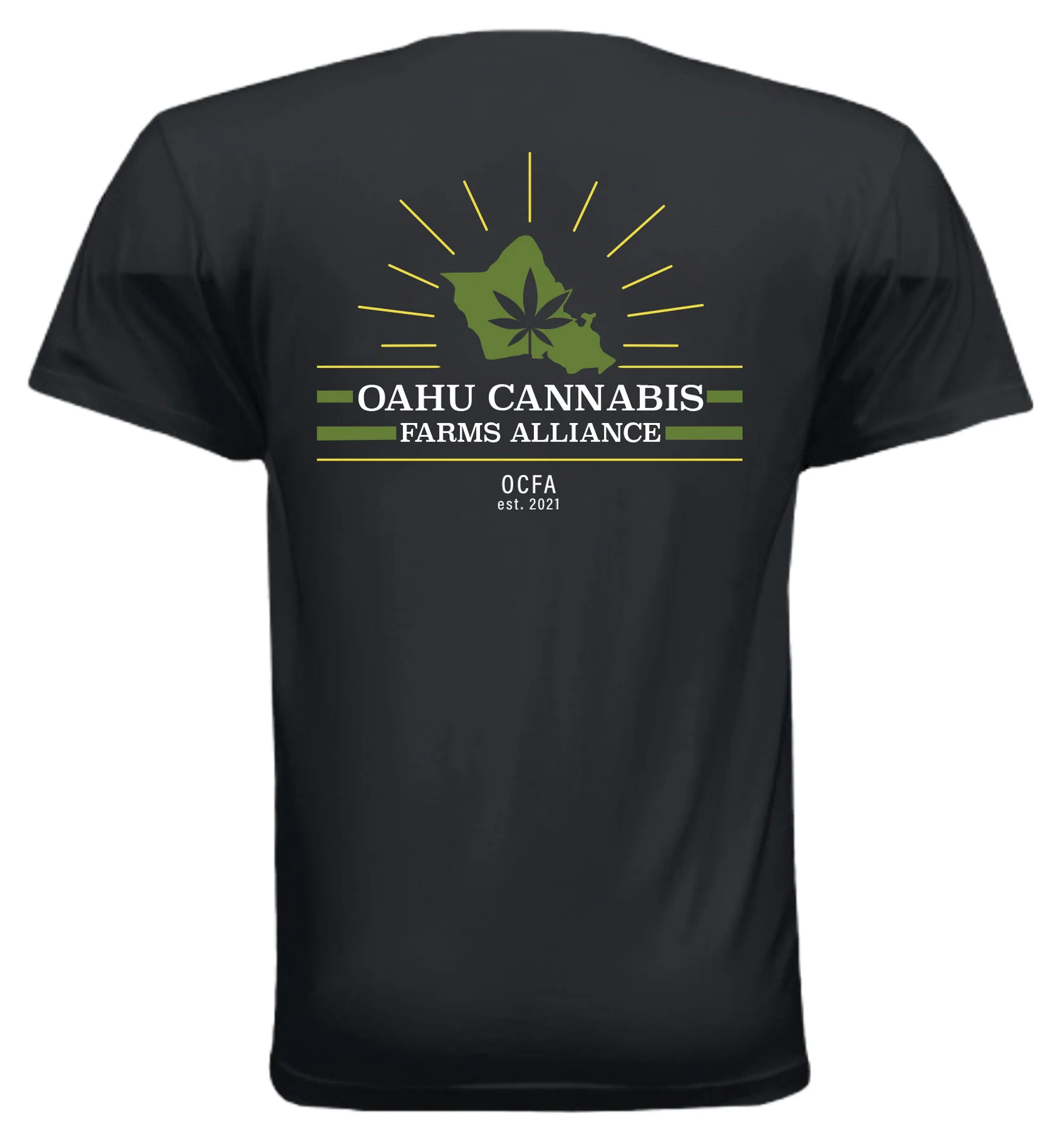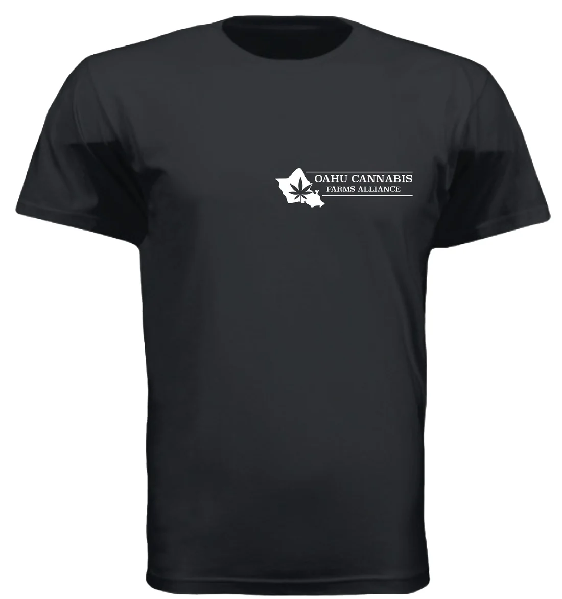 Represent your community and help support our cause with an official Oahu Cannabis Farms Alliance t-shirt. Sizes Small thru XXL available.